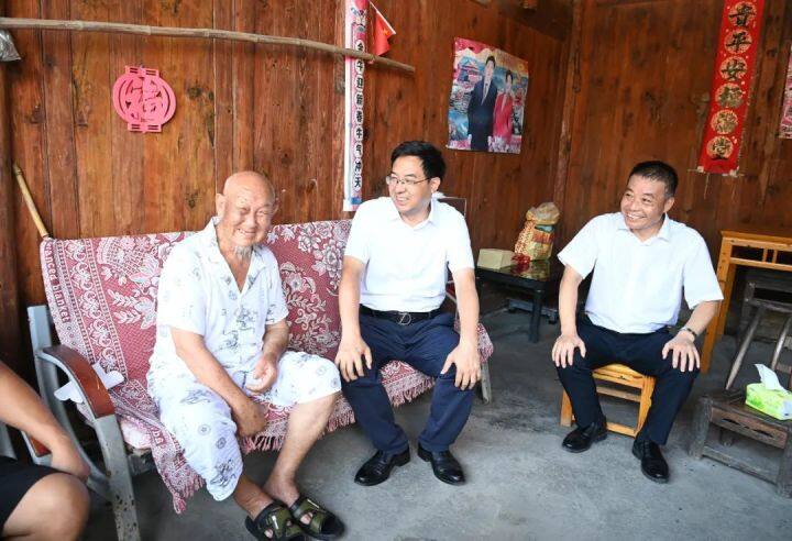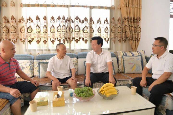 圖為穆嶸坤到萬山區(qū)丹都街道楚溪社區(qū)看望慰問重點優(yōu)撫對象廖如早。
