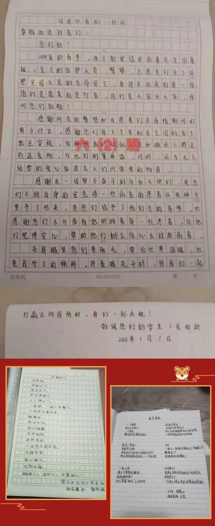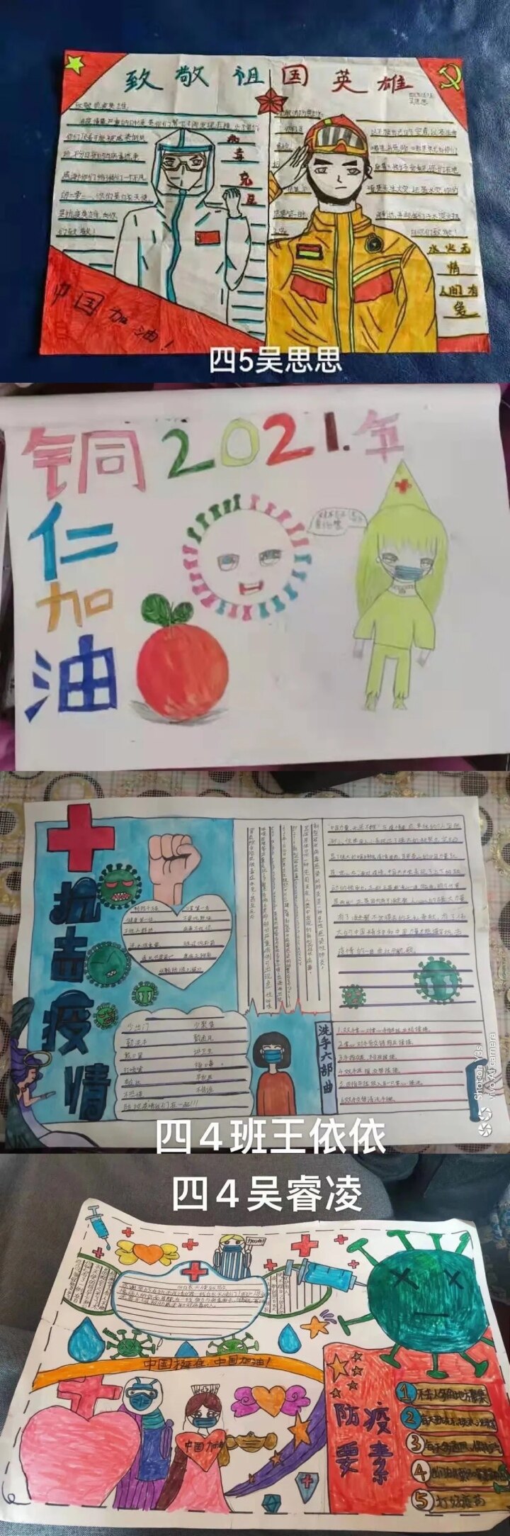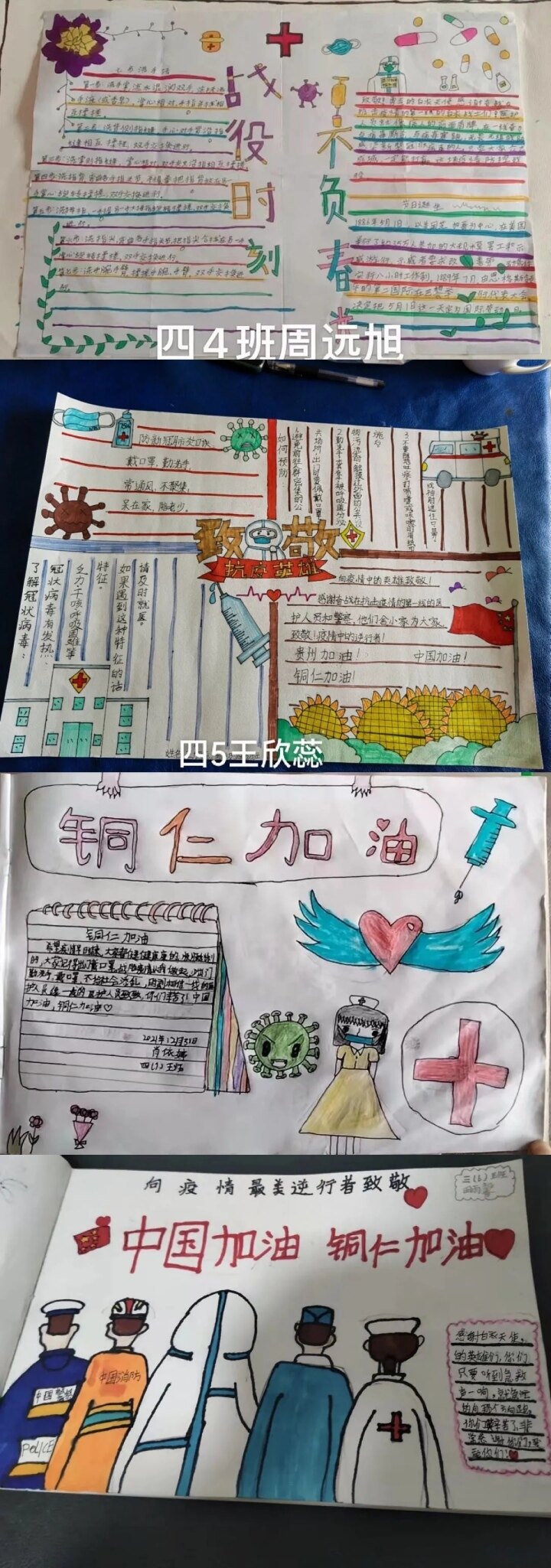 孩子們以唱歌、跳舞和鋼琴獨(dú)奏的形式錄制視頻,致敬抗疫醫(yī)護(hù)、一線抗疫者,傳遞大愛,為抗擊疫情貢獻(xiàn)精神力量。以兒童畫、手抄報(bào)的形式開展,手繪一張張感人的繪畫,歌頌“不懼風(fēng)雨的抗疫力量”。從所見所聞身邊小事寫起,用文字記錄下那些令人感動(dòng)的瞬間,用自己的方式致敬抗疫的你我他。