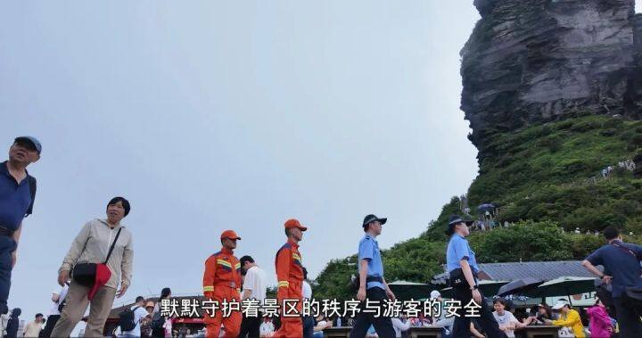 在梵凈山,為民服務(wù)的藏藍(lán)身影嵌入醉人的自然風(fēng)光,成了梵凈山景區(qū)人文關(guān)懷的生動(dòng)注腳。來梵凈山旅游,不僅能看風(fēng)景,還能見“人文”。(龔玥 楊芳)