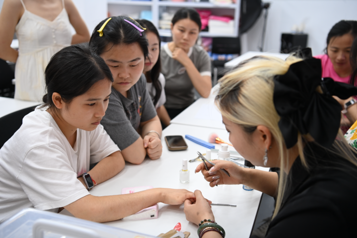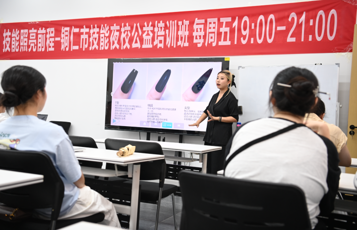 8月1日晚,在銅仁市公共就業(yè)服務(wù)中心技能夜校美甲公益班現(xiàn)場,學(xué)員們正在專注地學(xué)習(xí)美甲技巧。