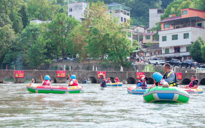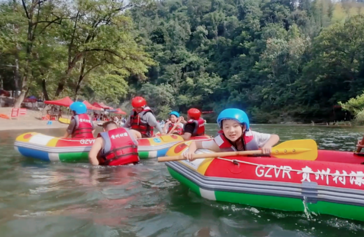 在銅仁距離主城區(qū)僅10公里的碧江區(qū)川硐街道板栗園村,該村重點(diǎn)打造的“貴州村漂”項(xiàng)目已成為市民避暑納涼、親子漂流的熱門打卡地。游客乘皮筏艇順江而下,在青山綠水間感受酷暑中的清涼愜意,這里正逐步成為銅仁近郊旅游的新地標(biāo)。