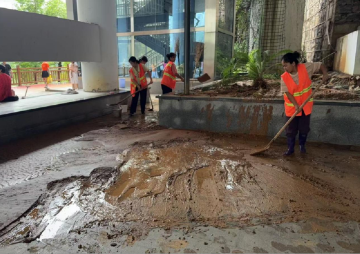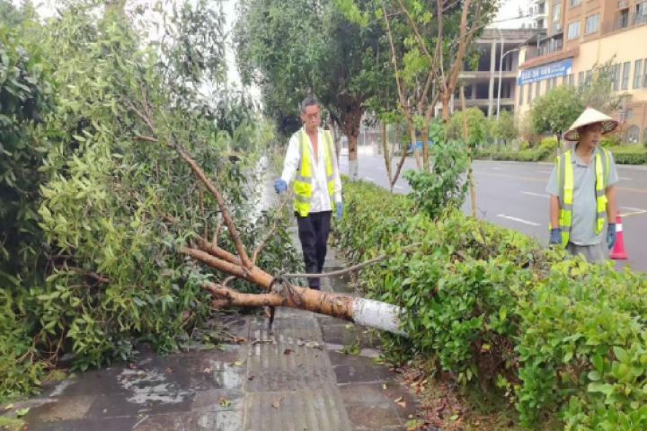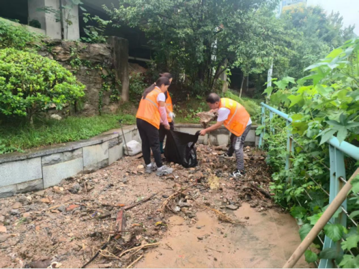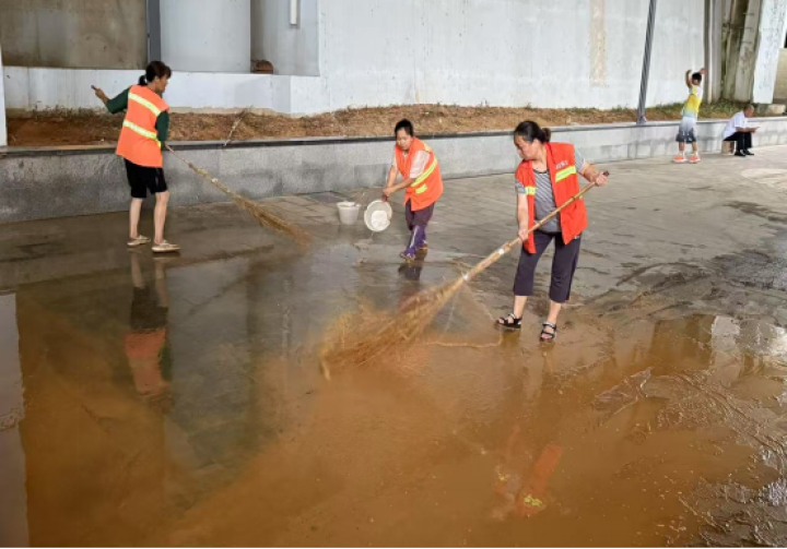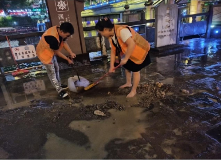 雨勢減弱后,碧江城管部門全面開展恢復(fù)工作,及時組織700余名環(huán)衛(wèi)工人清理落葉、垃圾、泥沙;調(diào)配4臺灑水車對沙子坳、市公安局、東關(guān)紅綠燈等路段淤泥砂石進行沖洗;重點對退水后的主次干道特別是低洼易淤積區(qū)域進行集中清淤和深度沖洗。同時加強巡查,清理樹木斷枝5處,處置隱患樹木,保障公園綠地及道路沿線安全暢通。
