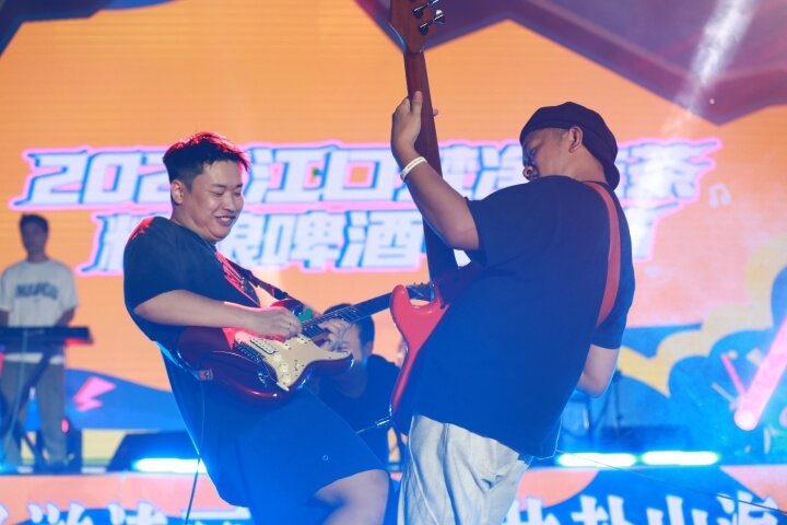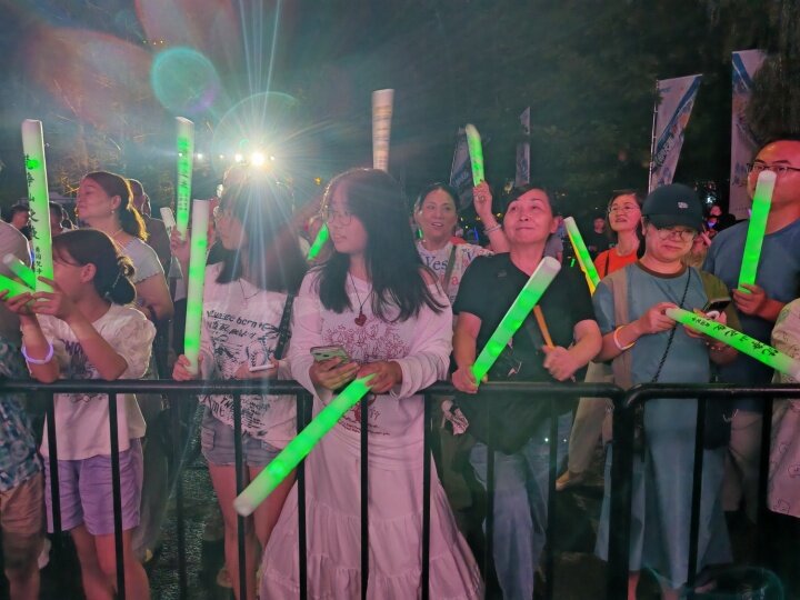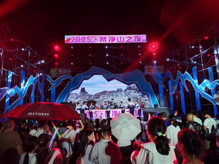 夜幕降臨,梵凈抹茶精釀啤酒電音節(jié)點(diǎn)燃云舍的夜晚,燈光秀、熱舞、DJ蹦迪、樂(lè)隊(duì)彈唱、歌曲等輪番上演,現(xiàn)場(chǎng)觀眾隨著音樂(lè)節(jié)奏扭動(dòng)身體,臺(tái)上臺(tái)下一起舞蹈狂歡,掌聲、歡呼聲、吶喊聲此起彼伏,來(lái)自全國(guó)各地游客和當(dāng)?shù)厝罕姎g聚一堂,共享云舍清涼狂歡。“我們從北京過(guò)來(lái),一路都玩的非常好,景色非常好,人非常好,重點(diǎn)是這個(gè)活動(dòng)辦的也非常好?!北本┯慰土合壬f(shuō)。