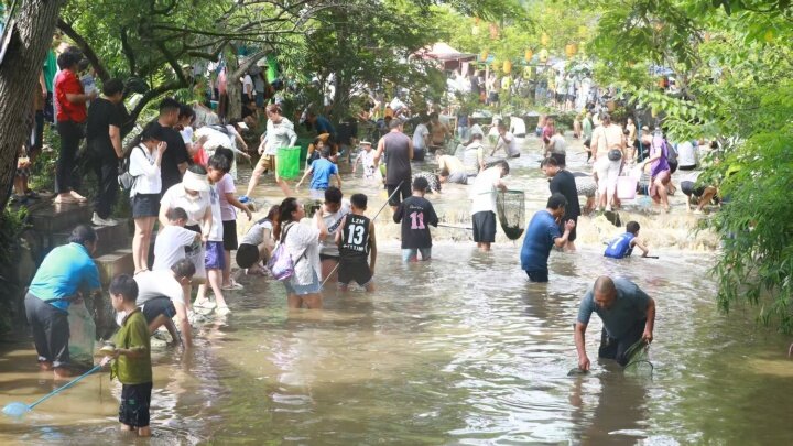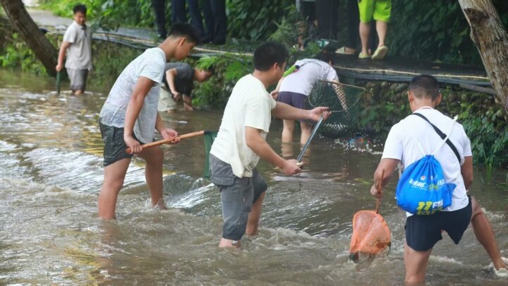 “摸魚”戲水狂歡,樂(lè)享美好時(shí)光。隨著號(hào)令聲響,平靜的龍?zhí)逗铀查g沸騰。參與者卷起褲腳,拿著撈魚網(wǎng)、小水桶等摸魚工具,跳入水中,化身捕魚能手。大家彎腰俯身、全神貫注,與靈活的魚兒展開(kāi)“較量”。水花飛濺間,現(xiàn)場(chǎng)氣氛熱烈歡快,不少家長(zhǎng)帶著孩子共同參與,在清涼的水塘中享受親子時(shí)光,趣味十足?!半m然我們沒(méi)有抓到魚,但是也捕到了很多小魚小蝦,他們玩得也很開(kāi)心,我覺(jué)得在現(xiàn)在的這個(gè)城市生活當(dāng)中小孩都很難有機(jī)會(huì)到鄉(xiāng)下來(lái)去體驗(yàn)這么有趣的活動(dòng),所以我覺(jué)得這個(gè)活動(dòng)開(kāi)展非常好,我也希望以后能多多看到這樣的活動(dòng)。”來(lái)自黔東南州的游客陳先生表示。