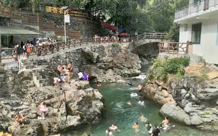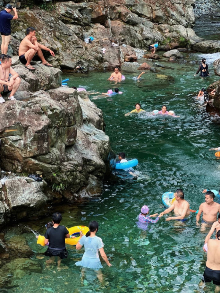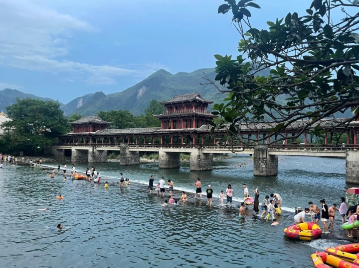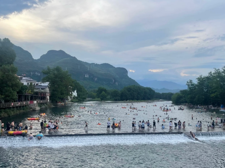 今年暑期,金盞坪“玻璃水”憑借“高顏值”刷屏社交平臺,迅速成為重慶、湖南、貴州等周邊省市游客的“避暑新地標”?!跋智逵譀?,踩進去的瞬間,夏天的燥熱全沒了!”來自重慶的游客王女士一邊用手機記錄溪水美景,一邊忍不住感嘆。在這里,游客不僅能沉浸式欣賞“玻璃水”與青山相映的風光,還能體驗溯溪、跳水、潛水、河邊燒烤等特色項目,在原生態(tài)體驗中感受鄉(xiāng)村的獨特魅力。