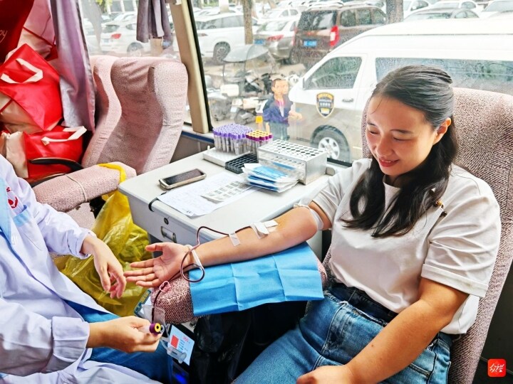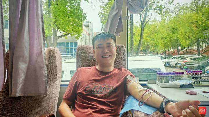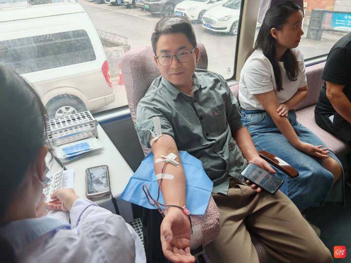 在采血車內(nèi),擼起袖子的干部職工們眼神堅(jiān)定,有的看著血液緩緩流入血袋,臉上露出欣慰的笑;有的獻(xiàn)完血后,還不忘在朋友圈分享:“今天解鎖了‘熱血奉獻(xiàn)’新體驗(yàn),為自己點(diǎn)贊!”