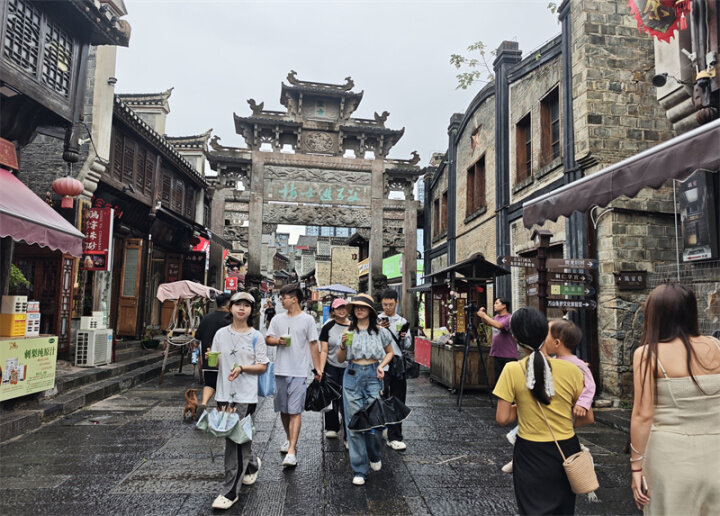 雨中的中南門,紅燈籠在雨幕中輕輕搖曳,古樓飛檐下的雨滴連成細(xì)線,游客的笑聲與雨聲交織成獨(dú)特的樂章。從舌尖上的抹茶香,到指尖上的苗繡韻,再到骨子里的文化魂,中南門歷史文化旅游區(qū)正以多元的魅力,持續(xù)書寫著銅仁旅游的精彩篇章,讓更多人讀懂這座城市的故事,愛上這片土地的溫度。(熊麗娟 姚元旭)