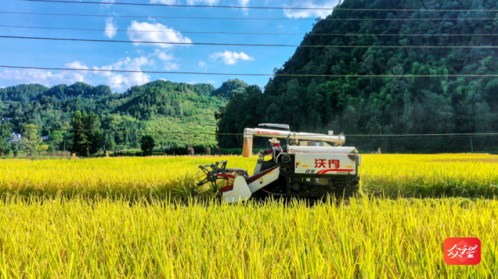 “今年,沿河在部分鄉(xiāng)鎮(zhèn)(街道)規(guī)?;N植水稻,打造示范基地?;厮緩牟シN到收割全程采用機(jī)械化操作,既省心又省力。這次我們要收割的水稻有30多畝,只需要五、六個小時就能收割完成?!毖睾愚r(nóng)望農(nóng)機(jī)服務(wù)專業(yè)農(nóng)民合作社員工田永浪說。